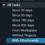 In the left-hand menu, select “All Tasks / With Attachments” to display only tasks that contain files.